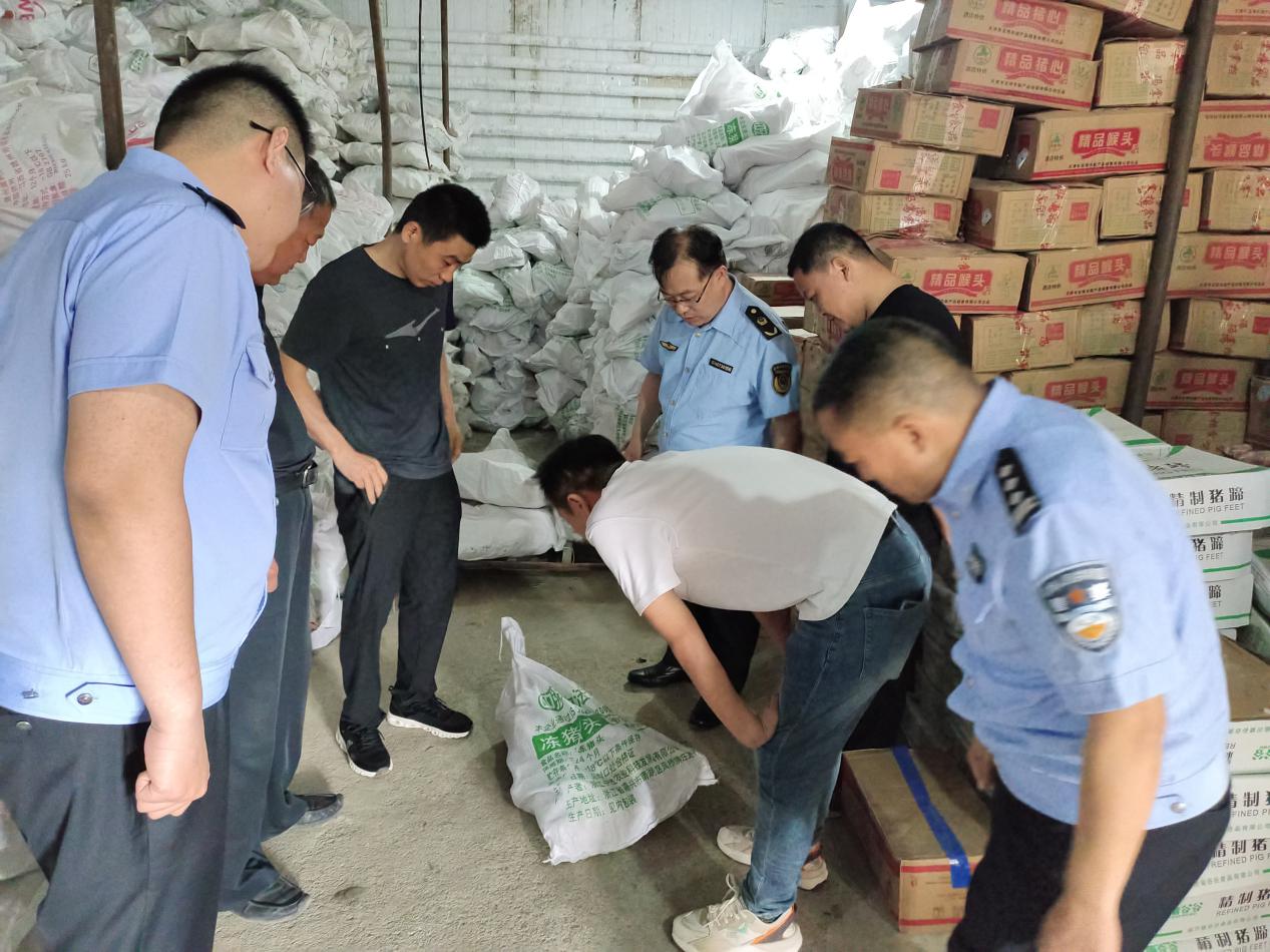 东昌府区、高唐县打私办联联合当地市场监管局等缉私部门以进口冻肉及肉制品为主要检查对象,以冷冻肉品批发市场、冷冻肉品库、各类冷冻肉品交易场所和摊点等为重点,加强冻品走私市场逆向倒查,逐一检查进口冻肉及肉制品是否具有合法来源证明、入境货物检验检疫证明等材料,对所有涉及冷冻肉品生产经营者的主体资格进行全面清查。严厉打击非法生产、销售冷冻肉品、承储不明来源冷冻肉品行为。