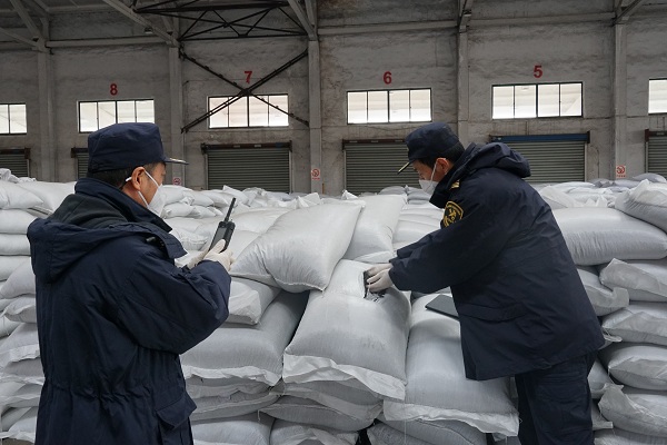 这批货物申报为聚苯乙烯再生粒子,张家港海关关员查验时发现该批货物为黑色颗粒状固体,有刺激性气味,于是对该批货物取样送检。目前,该批货物已移交相关部门作进一步处理。(史宇/文)